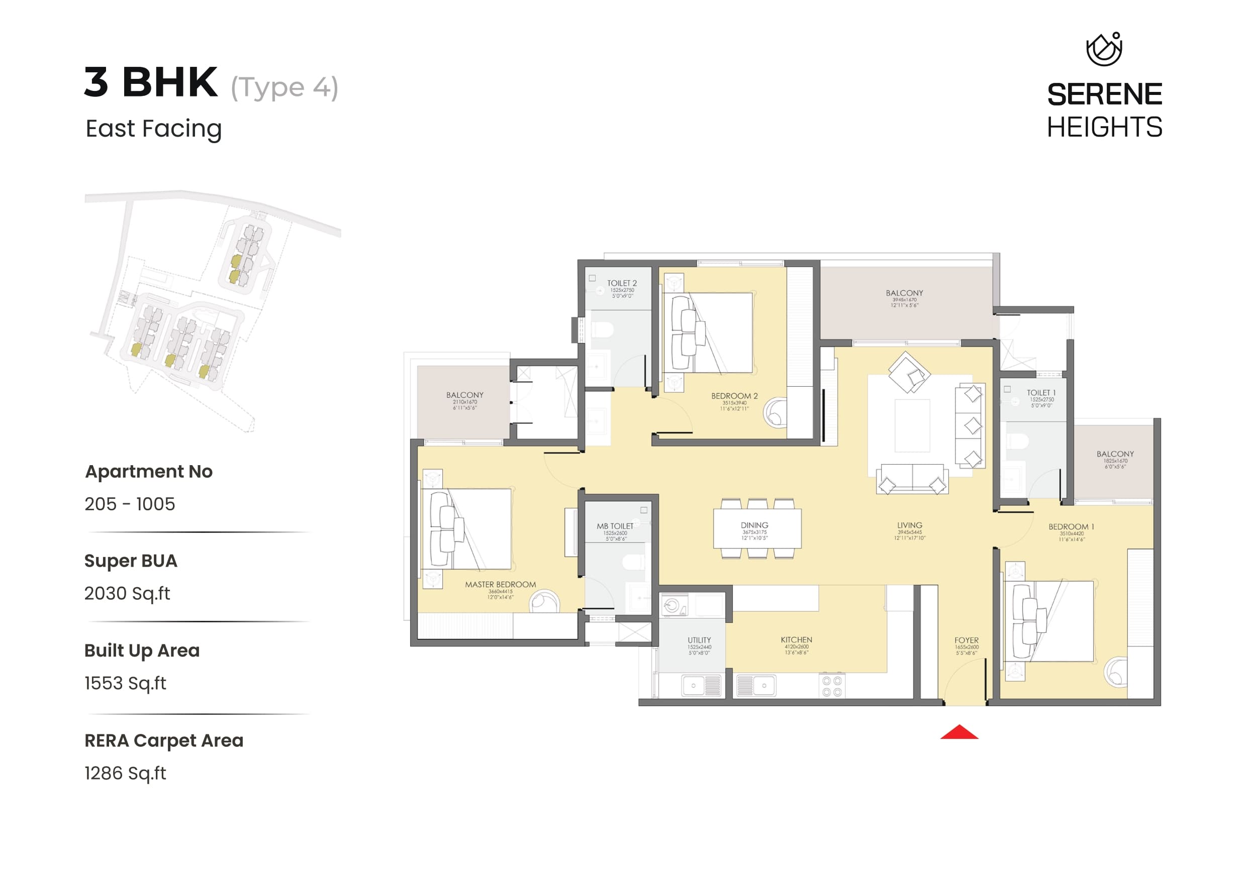 Serene Heights by Modern Spaaces is one of the prime offerings for those looking to buy a home in Bangalore East, located at Sompura Gate. As one of the newest residential addresses, it features apartments for sale and is currently under construction, with expected delivery by June 2028.
